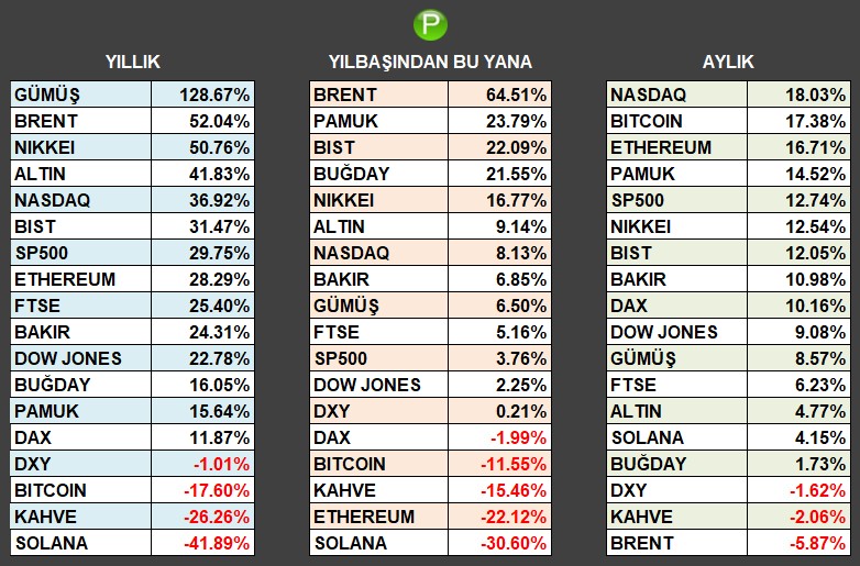 ALTERNATİF YATIRIM ÜRÜNLERİNİN GETİRİLERİ