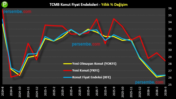 Konut Fiyat Endeksi (KFE): +%26,36 Yeni Konut Fiyat Endeksi (YKFE): +%28,42 Yeni Olmayan Konut Fiyat Endeksi (YOKFE): +%26,33