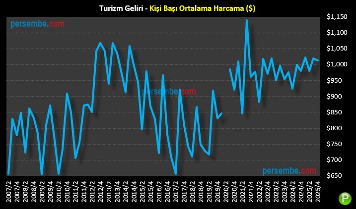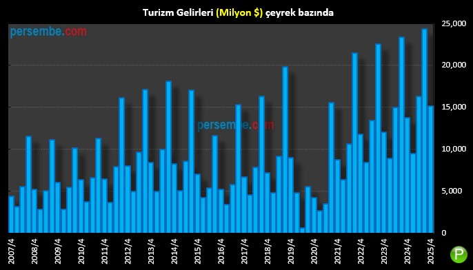 Gerçekleşen Turizm Gelirleri vs. persembe.com Yıl Sonu Projeksiyonu