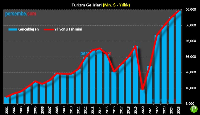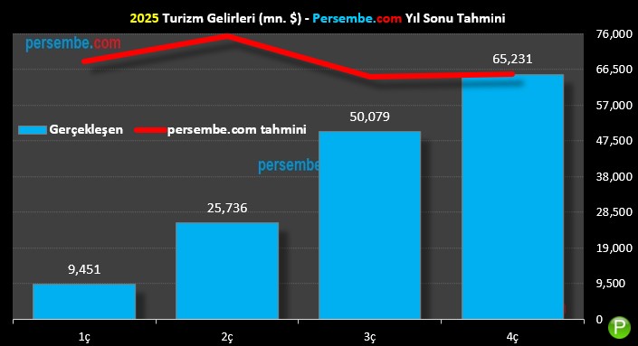 Gerçekleşen Turizm Gelirleri (61.103 mn dlr) vs. persembe.com Yıl Sonu Projeksiyonu